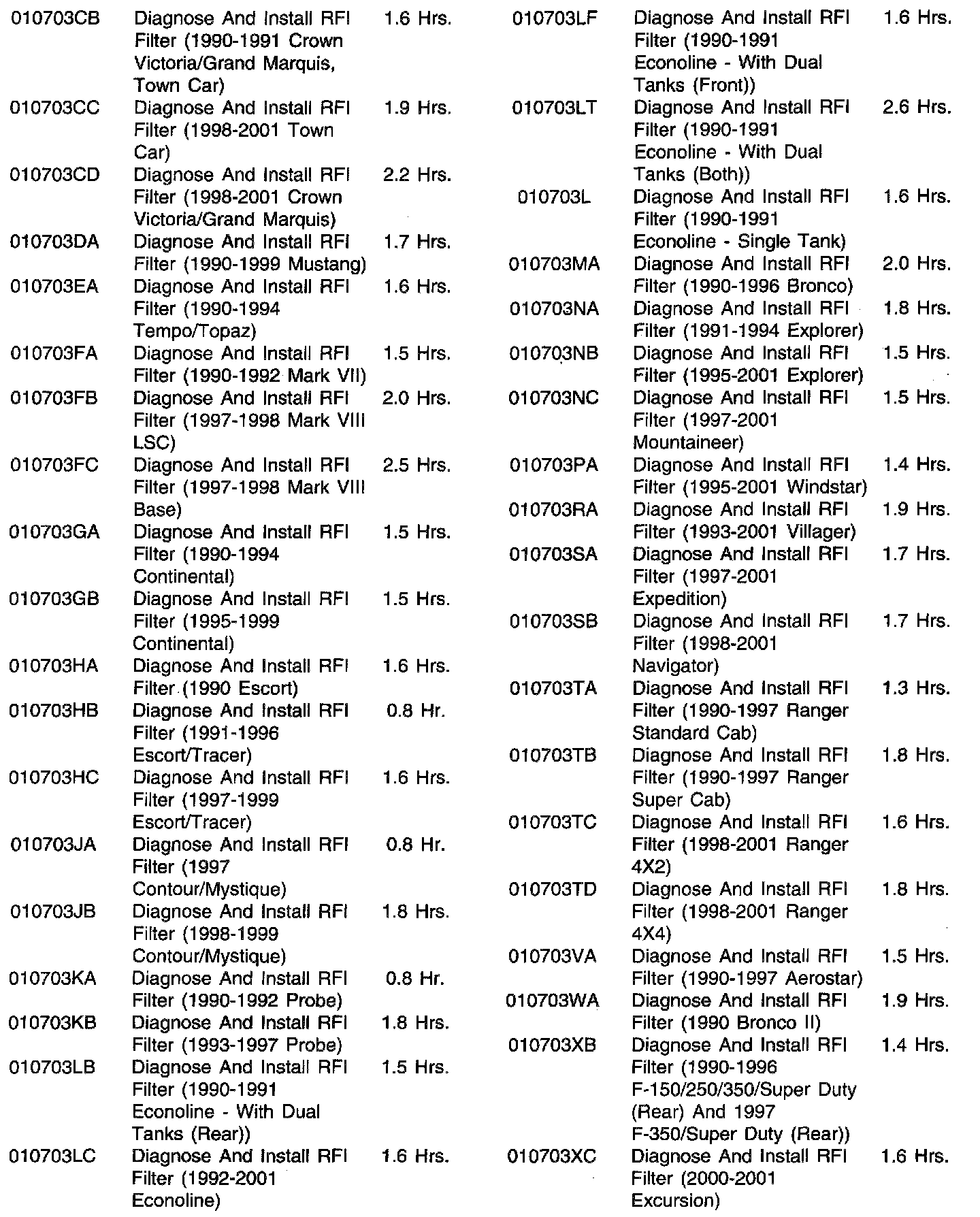 1990-2001 ECONOLINE, F-150, RANGER