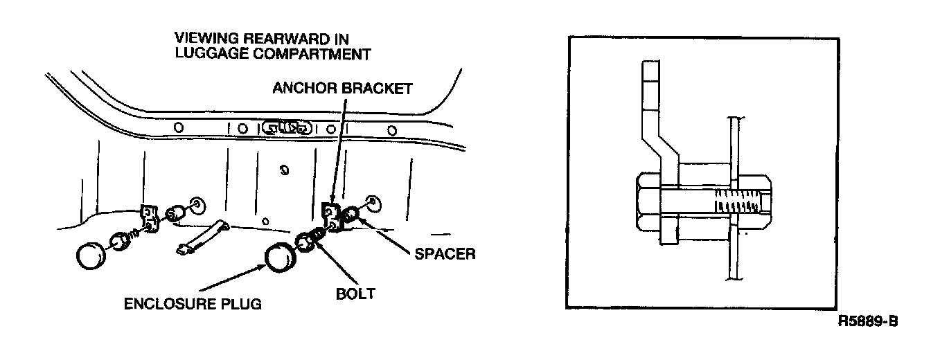 3. Insert a 10 mm (0.4 inch) spacer between the anchor bracket and the rear wall panel of the luggage compartment.