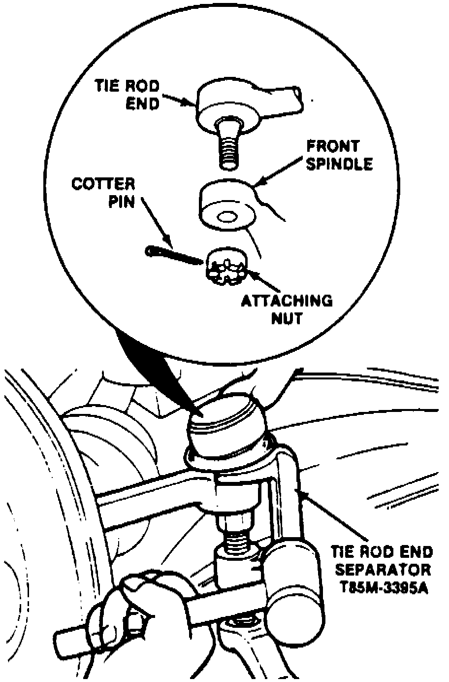 11. Use tie rod end remover tool No. 3290-D, or equivalent, to separate tie rod end from steering knuckle arm.