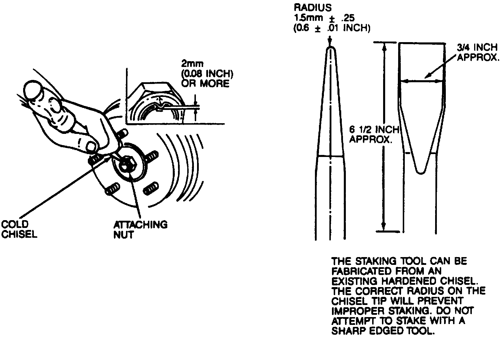 3. Carefully raise staked portion of halfshaft attaching nut using a small cape chisel.