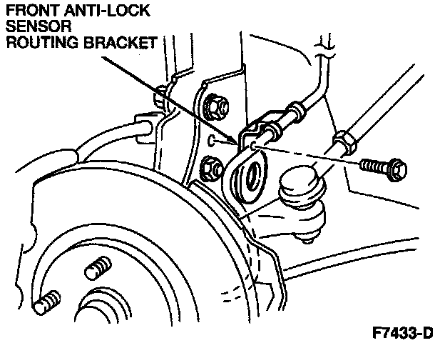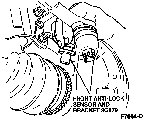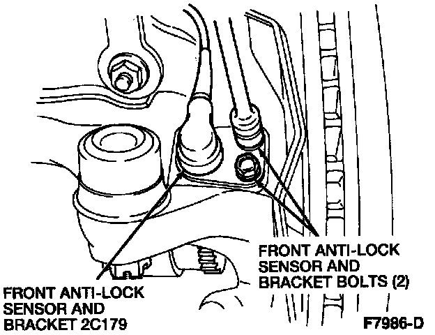 6. Remove the two front anti-lock sensor and bracket bolts.
