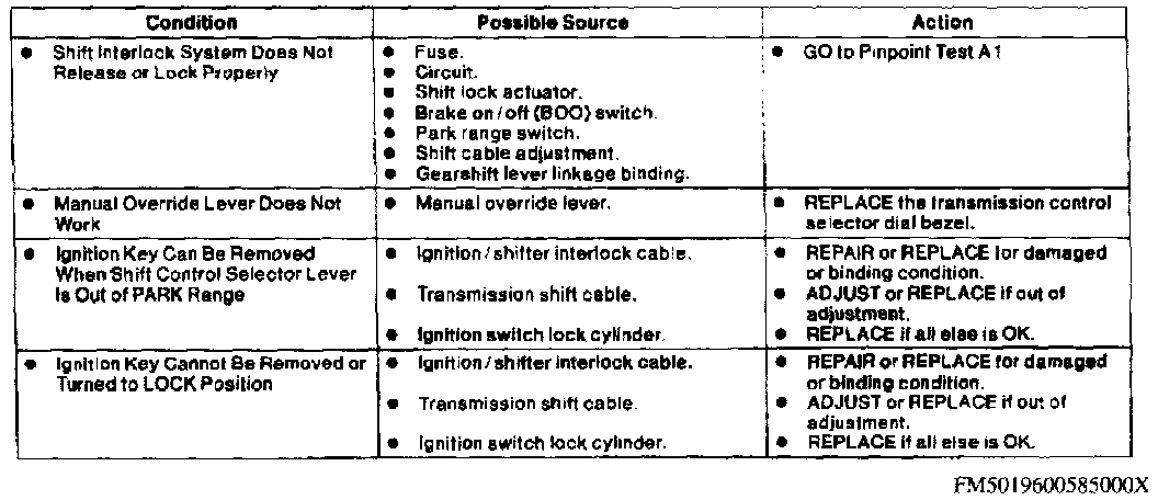 Shift Interlock Symptom Chart: