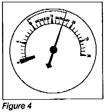 At idling speed, an engine at sea level should show a steady vacuum reading between 14" and 22" HG. A quick opening and closing of the throttle should cause vacuum to drop below 5" then rebound to 23" or more. See figure 1.