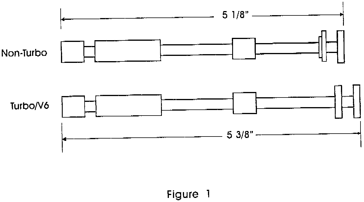 These symptoms may be caused by installing a manual valve of the wrong length. Complete valve body assemblies can be installed in any application, however, the manual valve must match the case. Non-turbo cases use a manual valve length of 5 1/8 inches, the turbo and V-6 cases use a manual valve that is 5 3/8 inches in length (figure 1).
