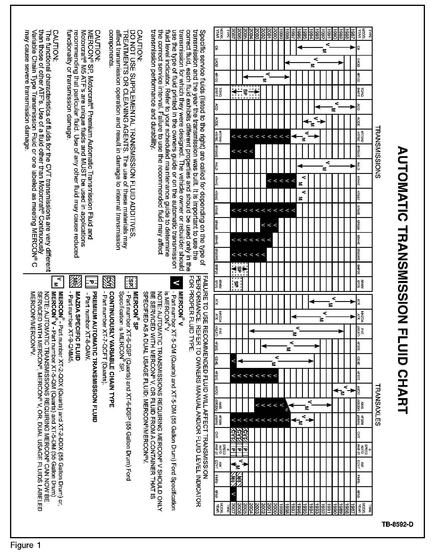 For proper fluid application on current and past model vehicles equipped with automatic transmissions I transaxles refer to the fluid usage chart. (Figure 1)
