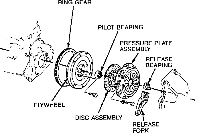 5. Remove bolts attaching pressure plate assembly to flywheel, then the pressure plate assembly.