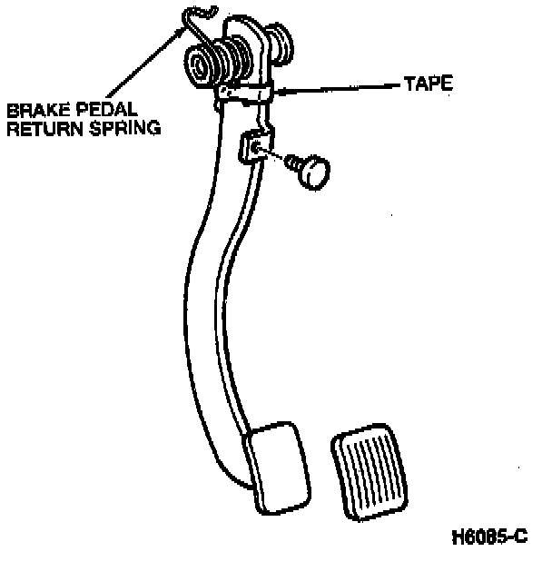 2. Position the brake pedal return spring on the brake pedal. Use a piece of tape to hold the brake pedal return spring in position.