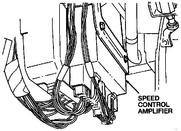 3. Disconnect the two speed control amplifier electrical connectors and remove the speed control amplifier.