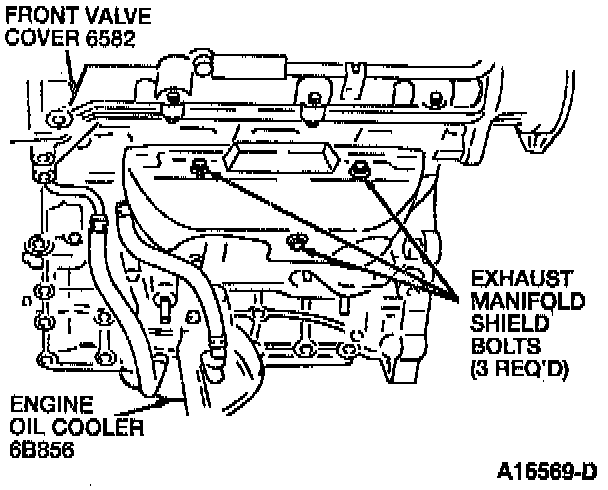 5. Remove the three exhaust manifold shield bolts and remove the exhaust manifold shield.