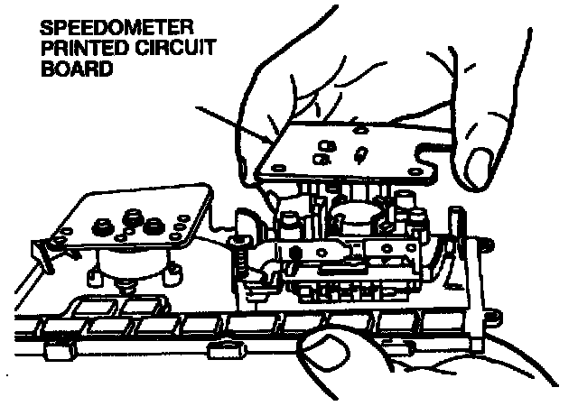 5. Press in the two tabs and remove the speedometer printed circuit board.