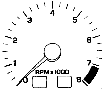 The tachometer is located in the instrument cluster to the right of the speedometer. The tachometer reads from 0 to 8,000 rpm and is triggered by pulses from the ignition coil. The GT model with the 2.5L engine has a 7,000 rpm redline.
