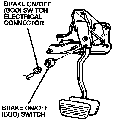 switch, which is operated by the brake pedal arm. When the brake pedal is pressed, the BOO switch activates the stoplamps.