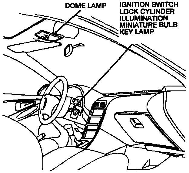 When the illuminated entry system is activated, the ignition switch lock cylinder illumination miniature bulb will automatically light and stay lit for approximately 10 to 30 seconds.