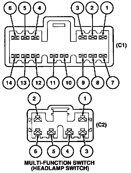 6. If the resistances are not as specified, replace the multi-function switch. Otherwise, return to the pinpoint tests. Pinpoint Tests (Without Autolamps)