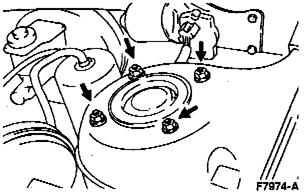 7. Tighten the front shock absorber upper mounting bracket nuts to 46-63 Nm (34-46 ft. lbs.).
