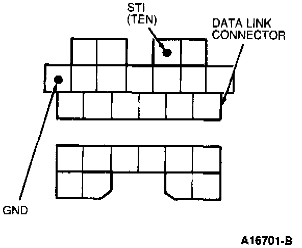 4. Connect a jumper wire between terminals STI (TEN) and GND of the Data Link Connector (DLC) located in the left hand front corner of the engine compartment, near the battery.