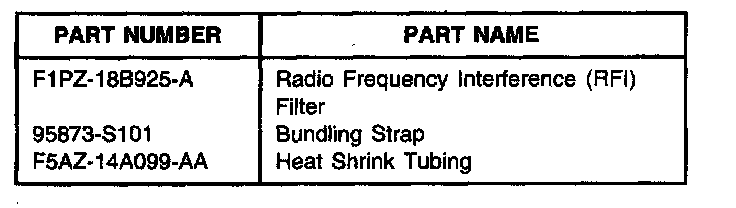Install an electronic noise Radio Frequency Interference (RFI) Filter (F1PZ-18B925-A) on the fuel pump inside the fuel tank. Refer to the following Test Procedure to confirm that the concern exists, then refer to the Service Procedure for repair details.