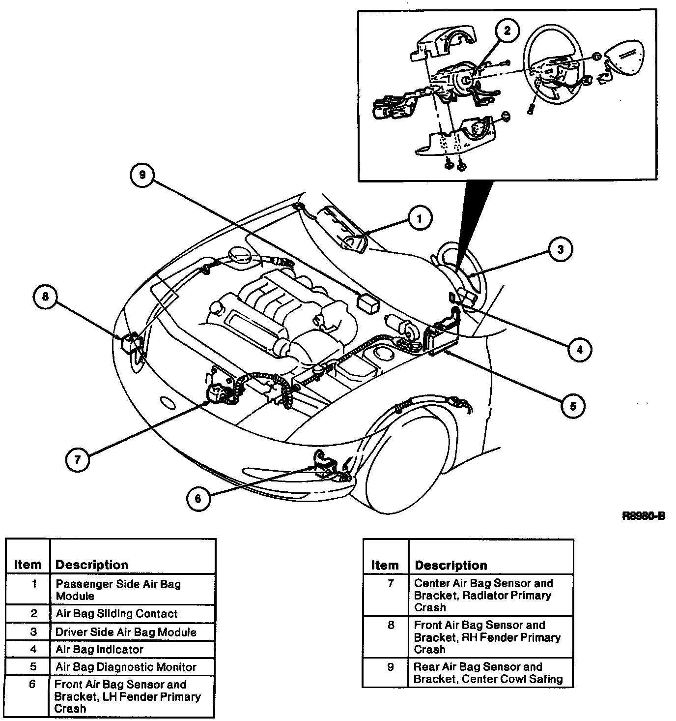 The Supplemental Restraint System (SRS) air bag is designed to provide increased collision protection for the front seat occupants in addition to that provided by the three point safety belt system.