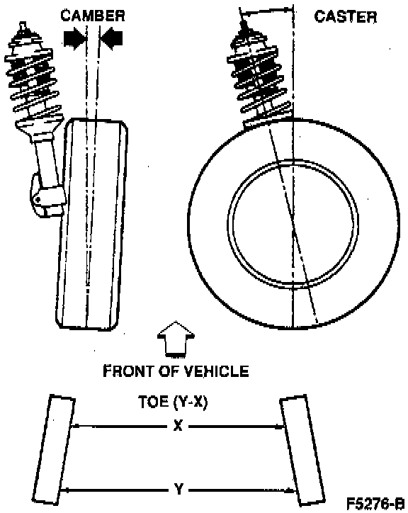 Toe-in and toe-out are the difference in the distance between the extreme front and extreme rear of the tires.