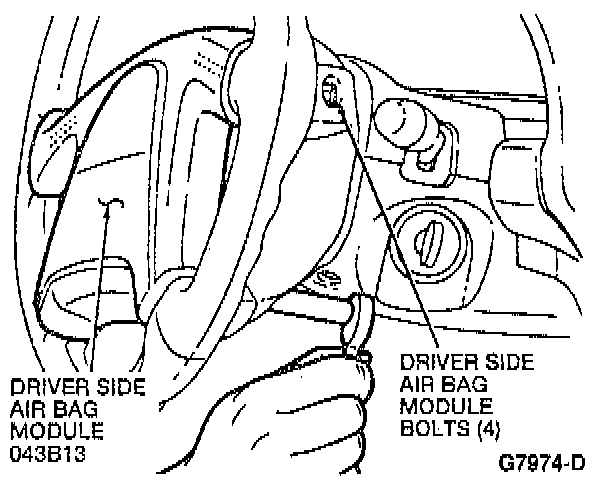 3. Remove the four driver side air bag module bolts and lift the driver side air bag module off the steering wheel.