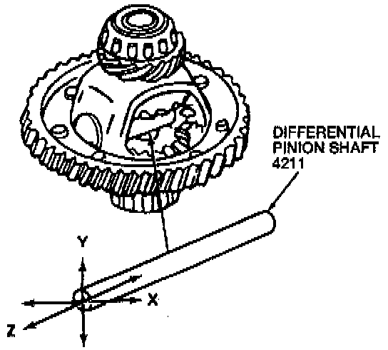 3. Make sure that movement within the differential is less than 0.10 mm (0.004 inch) in all directions. If movement is greater than 0.10 mm (0.004 inch) in any direction, determine whether the differential pinion shaft or trans axle case is causing the concern. Replace as necessary.