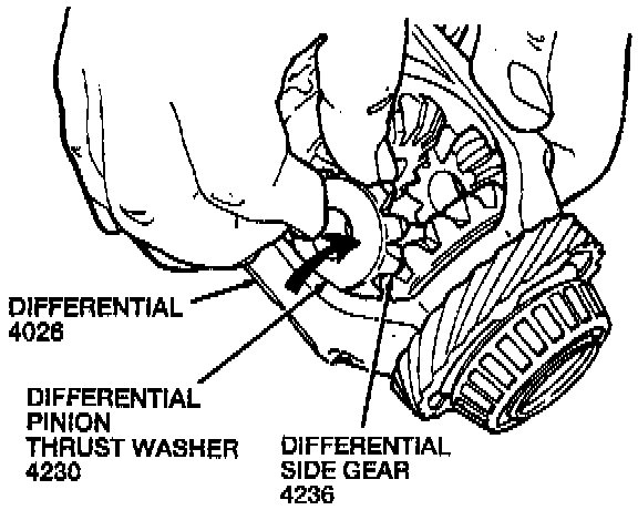 3. Remove the differential pinion gears and differential pinion thrust washers by rotating them out of the differential.