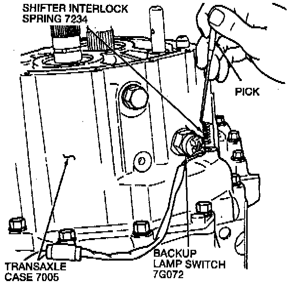21. Remove the detent spring screw, shifter interlock spring and the ball from the transaxle case.