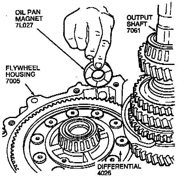 25. Remove the oil pan magnet from the side of the flywheel housing.