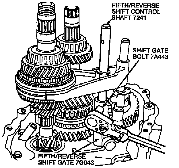27. Remove the shift gate bolt from the fifth/reverse shift gate.