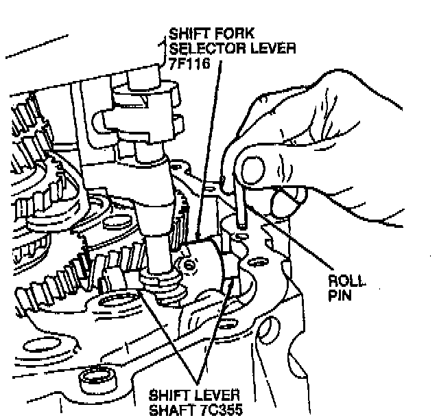 NOTE: The roll pin inserts into the shift lever shaft through the flywheel housing.