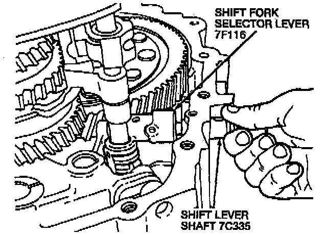 32. Remove the shift fork selector lever from the shift lever shaft.