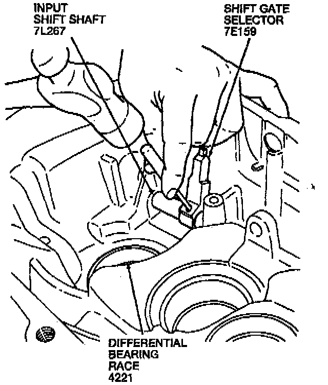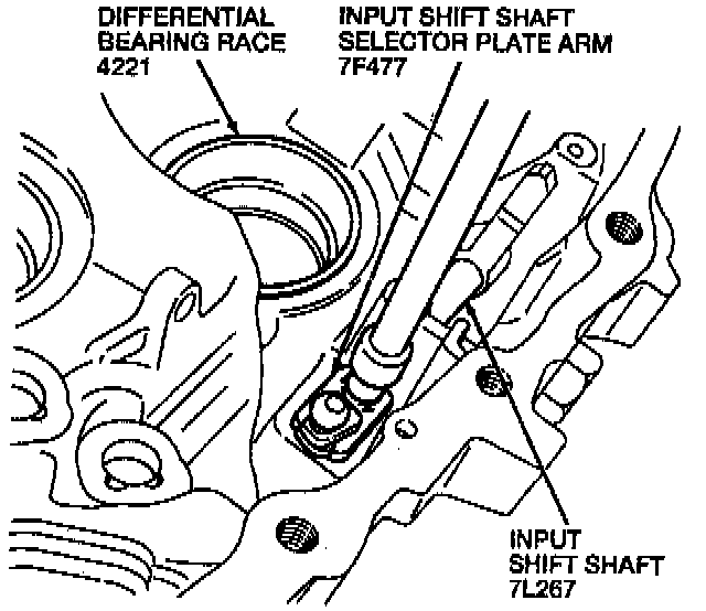 41. Slide the input shift shaft from the flywheel housing and remove the input shift shaft selector plate arm and the shift gate selector.