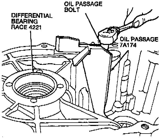 43. Remove the oil passage bolt, and remove the oil passage from the transaxle case.