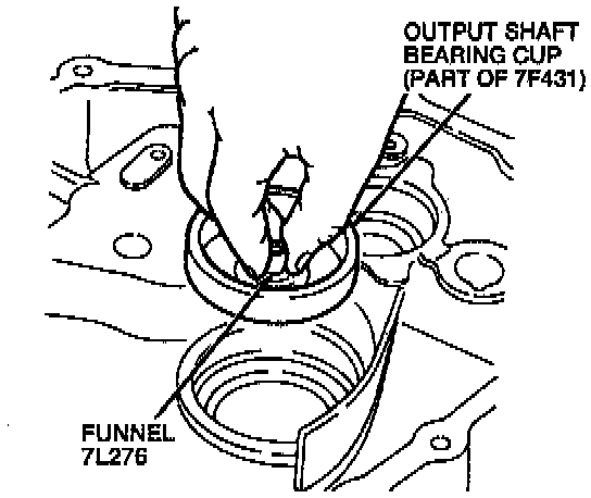 44. Remove the output shaft bearing cup and funnel by pulling up on the funnel.