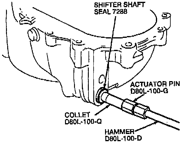 49. Use Actuator Pin D80L-100-G, Collet D80L-100-Q and Hammer D80L-100-D or equivalents to remove the shifter shaft seal.
