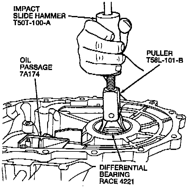 52. Use Impact Slide Hammer and Puller to remove the differential bearing race from the transaxle case.
