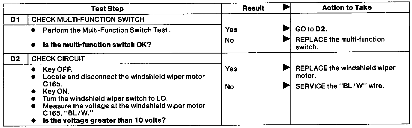 D: Windshield Wipers Inoperative At Low Speed