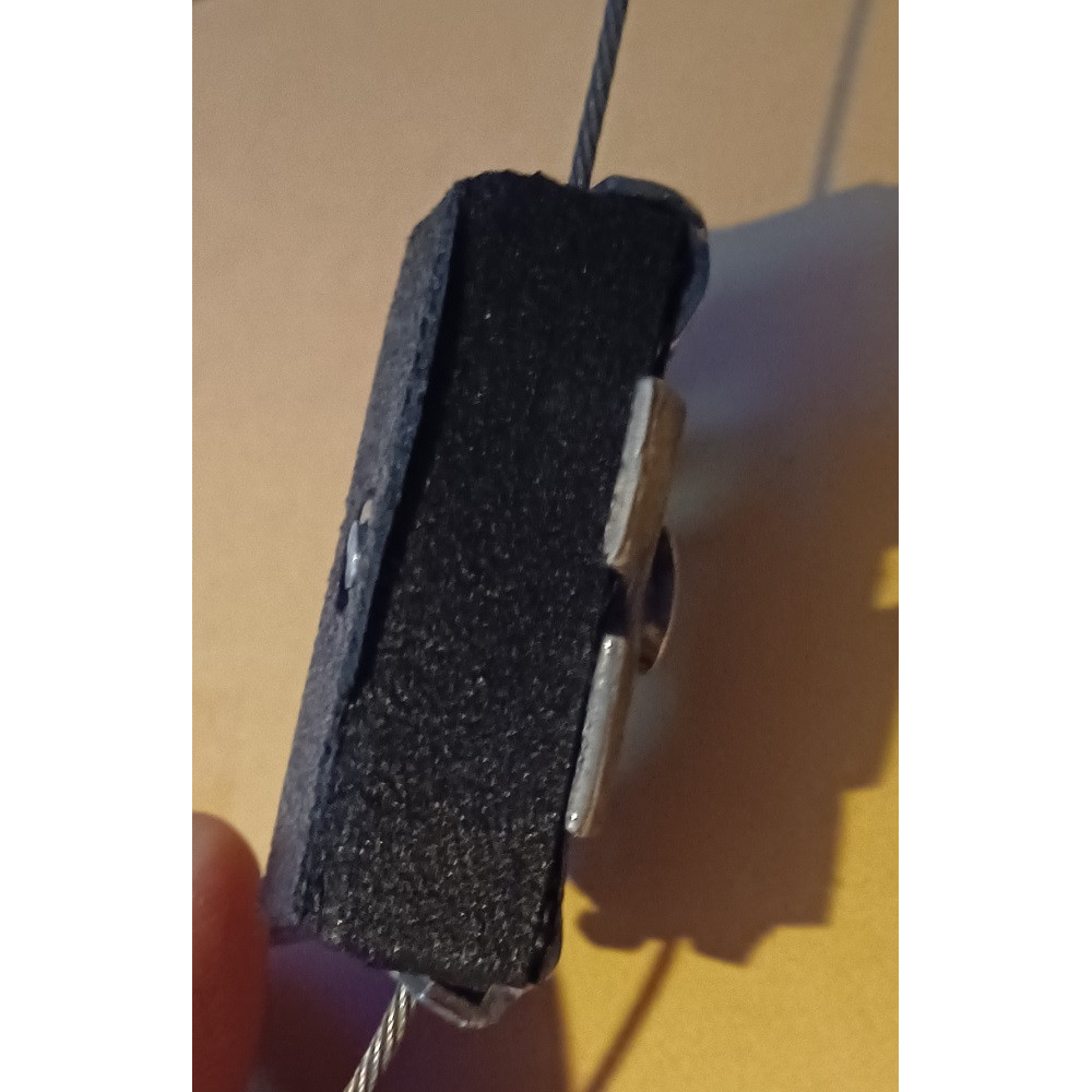 Pull the cables apart slightly allowing the bolt to go through metal bracket and through new holder.(We recommend getting a helper to pull the cables apart slightly while one person puts the bolt through.) Release cables and tighten nut (Hand Tighten only)